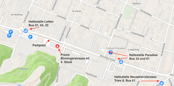 - Die Tramhaltestelle "Neuweilerstrasse" (Tram 8) ist 7 Gehminuten vom Gebäude entfernt.